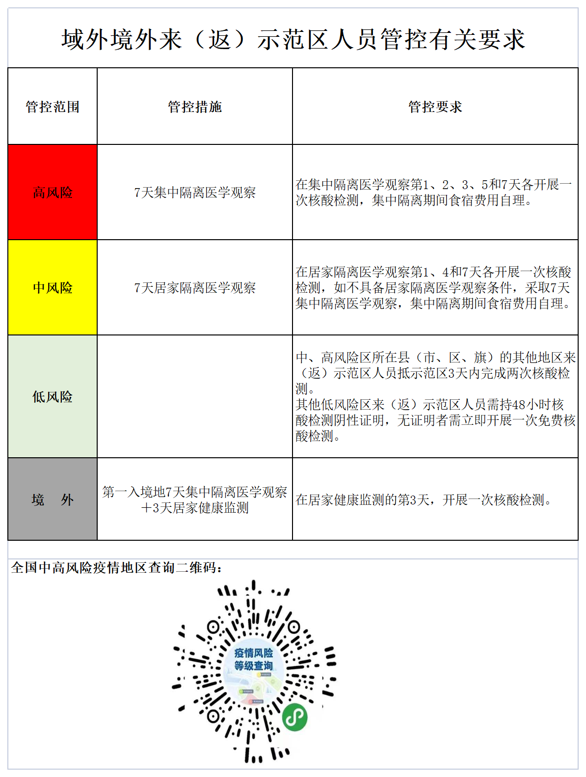 域外境外来(返)示范区人员管控有关要求